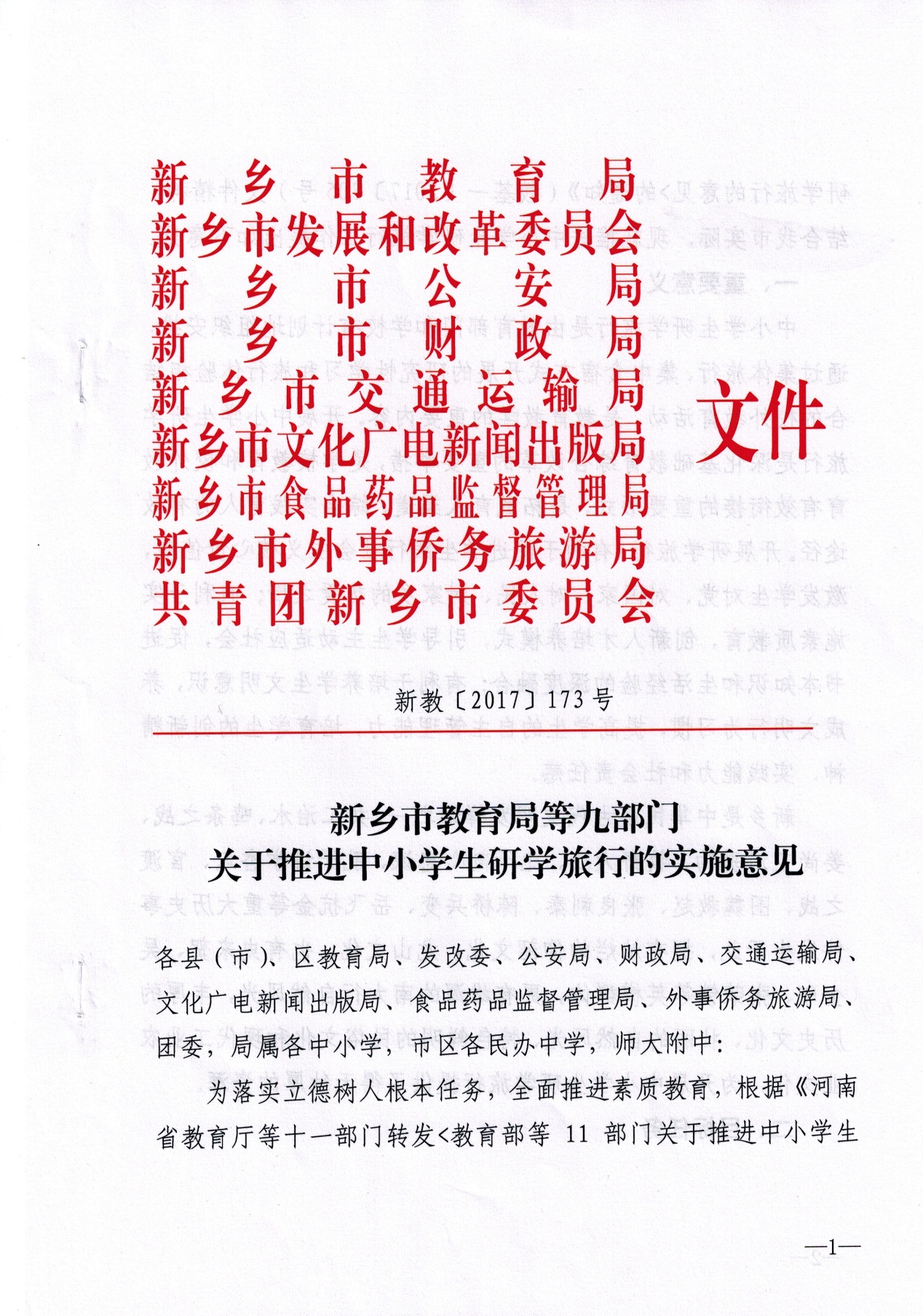 上一篇: 市级—关于推进新乡市中小学生研学旅行管理 工作办法
